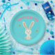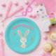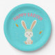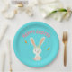 Prato De Papel Coelhinho branco felz pascoa em azul