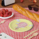 Prato De Papel Coelhinho no balão de ar quente primeiro aniversar