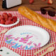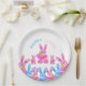 Bonitos de cor azul-esbranquiçada e cor-de-rosa com flores em fundo branco