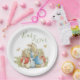 Coelho bonito, coelho mama coelhinho abraçando coelhinhos de bebê neste fundo branco, pratos de papel "Amor Bebê". Tão simples e doce. Perfeito para seu presente de chá de fraldas ou evento de criança pequena. Este gráfico é desenhado à mão e feito em aquarelas.