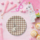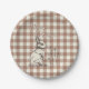 Coelho coelho bonito desenhado com a mão e flores estilizadas sobre um creme neutro quente e tradicional e padrão de xadrez Mocha Mousse gingham. Este design é totalmente editável para que você possa personalizar os textos das mensagens do Felz pascoa.