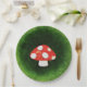Uma bela ilustração de um cogumelo vermelho visto. O fundo é uma textura verde-meteorizada, a cor que lembra uma floresta verde-luxuosa onde você pode encontrar esses pequenos fungos adoráveis. O cogumelo das ferramentas é um símbolo mágico místico que pode ajudar a adicionar capricho e mistério à sua casa e à sua vida.