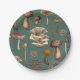 Prato De Papel Cogumelos selvagens em verde-pinheiro