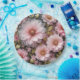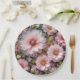 As flores rosadas do cosmos, deliciosas, com pétalas finas e translúcidas, são agrupadas, cercadas por folhas de ouro em preto