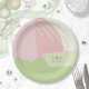 Abstract color blocking in a cheerful color palette of rose pink and spring green provides a striking background for the pieces in this contemporary wedding suite. The paper plate shown here is perfect for adding a bold, modern touch to your wedding table decor. Use the provided template to add your initials and wedding date. Search ID740 to see other color options and additional products with this modern design.