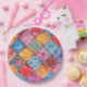This pretty quilt patterned paper plate can be personalized with your monogram or other text for a special luncheon or party event that ladies of all ages will delight in. Created in a brightly colorful faux patchwork print. Choose from two sizes.