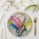 Prato De Papel Colorida Esplash de Aquarela Saxofone