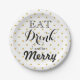 Prato De Papel Coma, Beba e Alegre-se | padrão de bolinhas