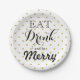 Prato De Papel Coma, Beba e seja Alegre | padrão de bolinhas