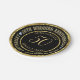 Elegante prato comemorativo do 50º aniversário de casamento com texto personalizável. Ouro metálico e preto. Acentos de diamantes brancos.