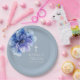 Prato De Papel Comunhão Azul Elegante Floral em Aquarela