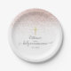 Prato De Papel Comunhão Solene Moderno em Brilho de Rosa Dourado