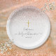 Com detalhes elegantes em brilho rosa dourado e um simples crucifixo dourado, este prato de papel para comunhão solene pode ser personalizado com as informações do seu evento especial. Concebido por Thisisnotme©