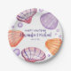 Celebre a sua ocasião especial com estes pratos de papel decorados com conchas vermelhas, roxas e magenta em aguarela.