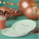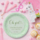 Fresco, moderno e cheio de vibrações verdes! Este design redondo “Oh menina” apresenta tons de sage, letras em escrita elegante e uma borda de confete verde brilhante que fica linda em qualquer mesa de chá de bebê. Perfeito para uma celebração com tema de eucalipto, boho ou jardim.