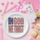 Em Deus, nós confiamos em estrelas e stripes texto cristão patriótico cristão inspirado, placas de papel únicas para seu evento religioso.