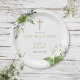 Este prato de papel de confirmação botânico de verde de eucalipto elegante pode ser personalizado com suas informações em tipografia chic. Projetado por Thisisnotme©