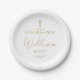 Prato De Papel Confirmação Minimalista em Dourado Elegante