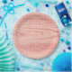 Um bom padrão digital em pêssego, vermelho e bronzeado, criado de uma fotografia de perto de um conselho metido ao lado de um antigo banheiro. Cores melhoradas digitalmente usando software. Belo grão de madeira com áreas mais escuras do visto.