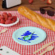 Placas com grande gota d'água com a terra mapeada na gota e as palavras "Conservar", para fazer as pessoas pensarem sobre a conservação da água.
