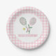 Pré-aniversário de Tênis com raquete rosa e arco verde.