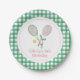 Pré-aniversário de Tênis com raquete rosa e arco verde.