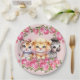 Prato De Papel Convite para Chá de fraldas de Garota Animal Rosa