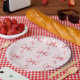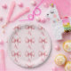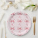 Cute and coquette birthday party paper plates featuring illustration of pink bows and hearts.