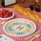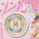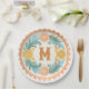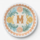 These monogram paper plates have a vintage Mexican talavera tile design.