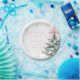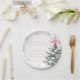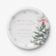 Celebrate in style with these personalized plates snowy pine trees and pink bows. Perfect for a Winter Onederland themed first birthday.