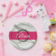 Etiquetas de logotipo de nome redondo moderno. Texto personalizado do nome design de mármore branco, rosa quente e preto. Elegante design de círculo de tendência.