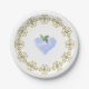 Adicione o charme deste prato de papel elegante com um coração de aquarela feito de hortênsias azuis suaves e folhas verdes à sua festa, que é perfeito para casamentos, festas de jardim ou celebrações de primavera.