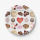 Este design apresenta uma variedade de ilustrações de chocolate. Combinada com o seu próprio texto personalizado, esta composição cria pratos de papel bonitos, modernos e únicos para a festa do chá da tarde, compro de chocolate, etc.