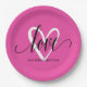 A palavra amor em um script chic sobre um coração branco elegante, esses pratos rosa quente são divertidos para chá de noiva, casamentos, festa de aniversário, dia dos namorados ou qualquer ocasião especial.