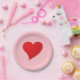 Pratos de papel de festa chiques femininos com coração grande rosa vermelho.