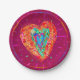 Esses pratos de papel para salvar a data do casamento apresentam um coração estilizado retrô hippie em vermelho, rosa e turquesa em um fundo rosa. Personalize com os nomes dos noivos e a data do casamento em letra moderna. Criado pelo renomado artista Tim Coffey.