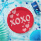 Vermelho romântico e fofo com enormes letras cor-de-rosa Xoxo e corações cor-de-rosa.
