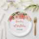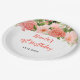 This beautiful and elegant plate features watercolor coral pink red roses and foliage. The text combines handwritten script and serif fonts for a stylish and modern look. This is perfect for a spring or summer rustic birthday.