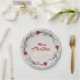 Prato De Papel Coroa de Natal Vermelha e Prateada