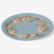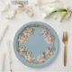 Excepcional prato de papel no verdadeiro estilo Rococó, exibindo anjos querubins embalados por nuvens e rodeados por uma exuberante coroa floral dourada em um campo azul pálido. Uma escolha deslumbrante para casamentos sofisticados, festas de jardim e eventos de aniversário históricos. Celebre com arte atemporal, ideal para quem adora decoração francesa antiga e detalhes luxuosos.