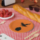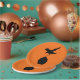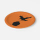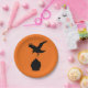 Placas divertidas com as silhuetas de um mergulho de corvo bombardeando um cupcake. Divertido por um chá de fraldas de Halloween ou pela futura mãe gótico.