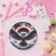 Magnífica coruja estendendo as asas sob um eclipse celestial brilhante.