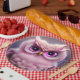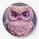 Prato De Papel Coruja Rosa Fluffy com Corações