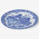 A aparência da típica cerâmica azul-selvagem com uma reviravolta única e moderna! Uma fissura - o olhar de fundo dá um efeito de vintage. A minha cena original, pintada à mão, da ilha de olhar, inclui árvores estilizadas, rochas e um edifício do templo, com raposas florais azuis e brancas por toda a parte - nos gramados, na ponte e no cais, e até num barco de pesca... Os pássaros fênix tradicionais sobrevoam. Perfeito para qualquer raposa ou amante de os animais ou para qualquer pessoa que ame cerâmica e decoração azul e branca. Arte e design originais peculiares, únicas, de Tuzi Williams.