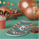Adicione um toque festivo à sua mesa com estas placas de papel com um crânio de açúcar arrojado vestindo um sombrero. O esquema animado de cores vermelho, vermelho e ouro captura o espírito comemorativo de Día de los Muertos e torna essas placas perfeitas para festas de Halloween, aniversários temáticos, celebrações culturais ou uma festa viva.