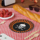 Prato De Papel Crânio de Halloween em preto e laranja