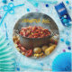 Placas de papelão com imagem de cozinhar de lagosta com batatas e milho para um fermento de lagosta de verão.