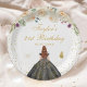 Prato De Papel Cream Floral Brown Hair Girl Festa de aniversário