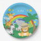 Prato De Papel Crianças Safari Selva Animais e Nome