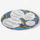 crie a sua própria festa de texto de foto em papel. Placa de papel fotográfico descartável modelo arco-íris com fundo de onda espiral. toque pessoal único individual para o seu evento ou festa. Seja festa de aniversário, churrasco, aniversário, festa hippy 70s, aposentadoria ou outra. Pode adicionar 4 imagens ou fotos Ao estilo simples moderno pode excluir texto ou substituir por sua própria mensagem personalizada. Adicione um toque pessoal à sua comemoração com este modelo de papel personalizado! Personalize e carregue facilmente até 4 das suas fotos favoritas e adicione seu próprio texto para criar um design exclusivo para aniversários, chás de fraldas, festas de crianças, feriados ou qualquer evento especial. Com seu próprio conteúdo personalizado, este prato adiciona charme e personalidade a cada mesa de festa